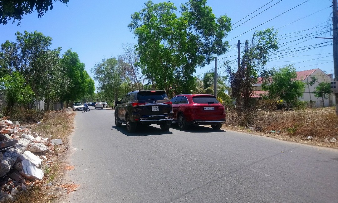 Đường ĐT 715 nối tuyến Võ Nguyên Giáp vào sân bay Phan Thiết ít ngày qua tấp nập người xe. Hàng loạt ô tô mang biển số TP HCM, Bình Dương, Đồng Nai và cả các tỉnh phía Bắc kéo nhau đậu khắp tuyến đường trung tâm xã Thiện Nghiệp.
